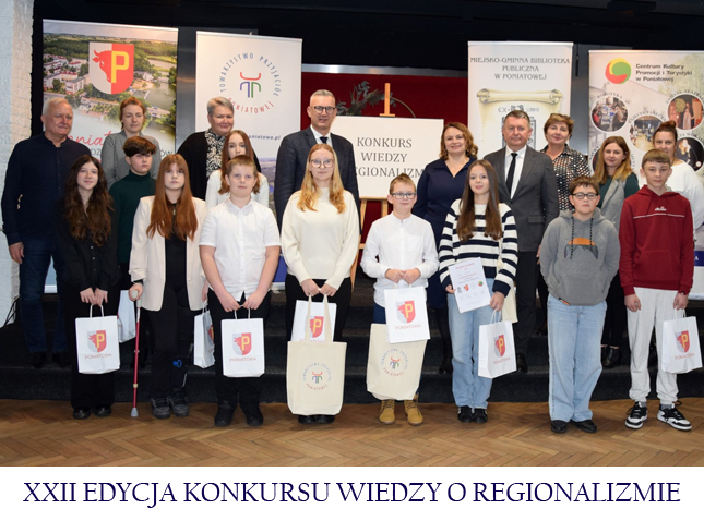 [26.11.2025] XXII EDYCJA KONKURSU WIEDZY O REGIONALIZMIE [28.11.2024] XXI EDYCJA KONKURSU WIEDZY O REGIONALIZMIE [05.10.2023] Regulamin XX Jubileuszowej Konkursu Wiedzy o Regionalizmie [02.12.2019] XVIII Konkurs Wiedzy o Regionalizmie [05.12.2017] XVI Konkurs Wiedzy o Regionalizmie [29.11.2016] XV jubileuszowa edycja Konkursu Wiedzy o Regionalizmie [25.11.2015] Finał XIV edycji Konkursu Wiedzy o Regionalizmie [12.11.2014] Finał XIII edycji Konkursu Wiedzy o Regionalizmie
